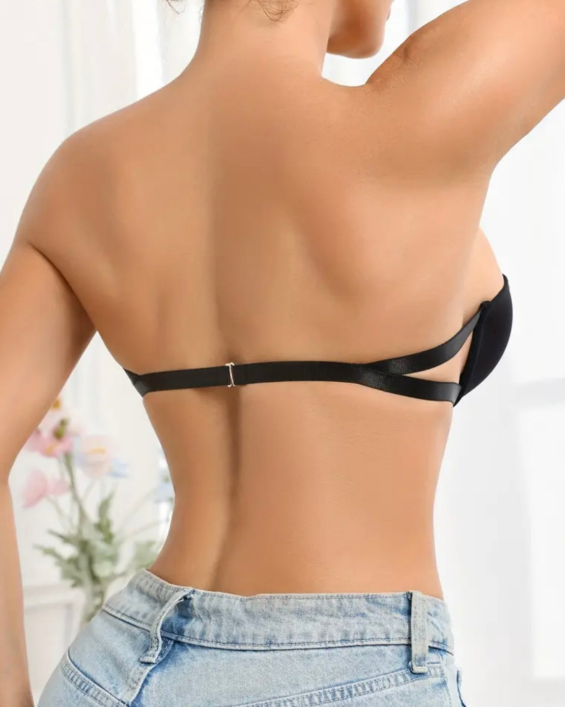 • Reggiseno nero senza spalline, con struttura di sostegno laterale