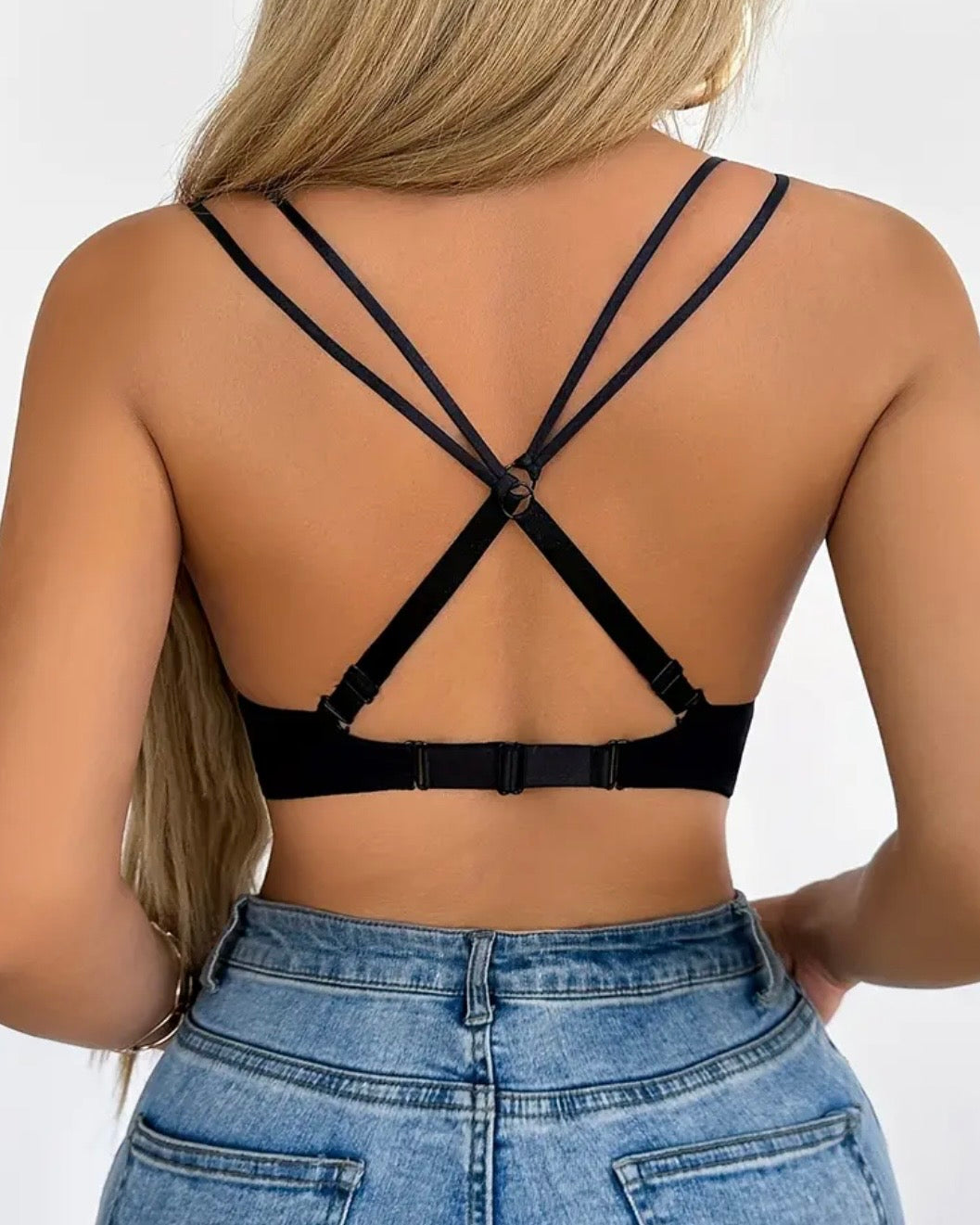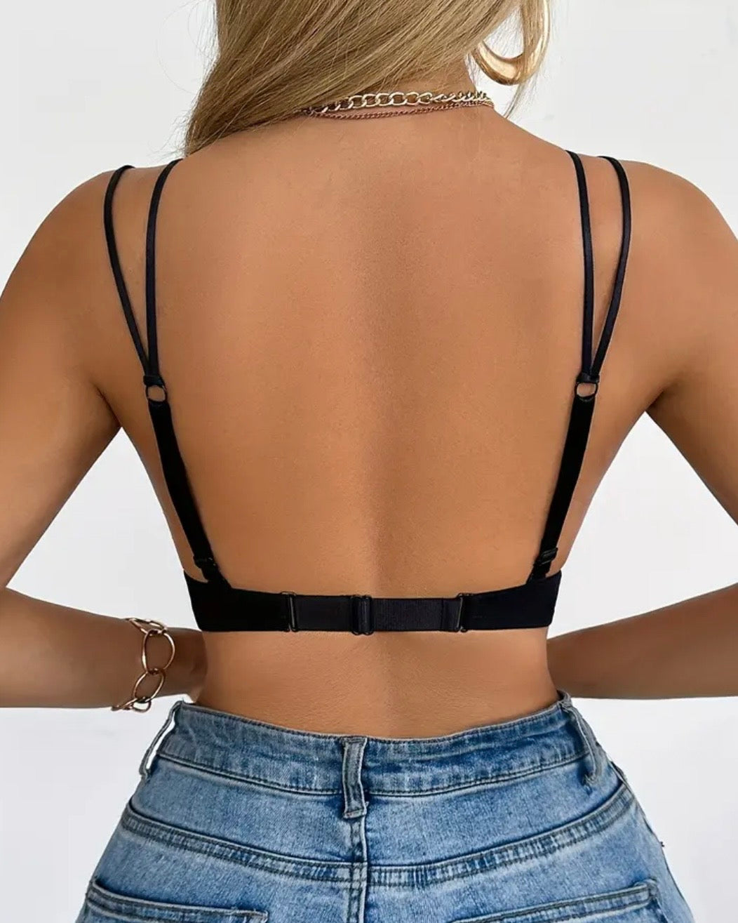 • Bralette nero con scollo a V profondo e coppe strutturate