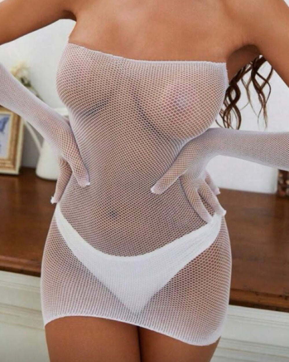 • Design: guanti lunghi coordinati e body a rete semi-trasparente