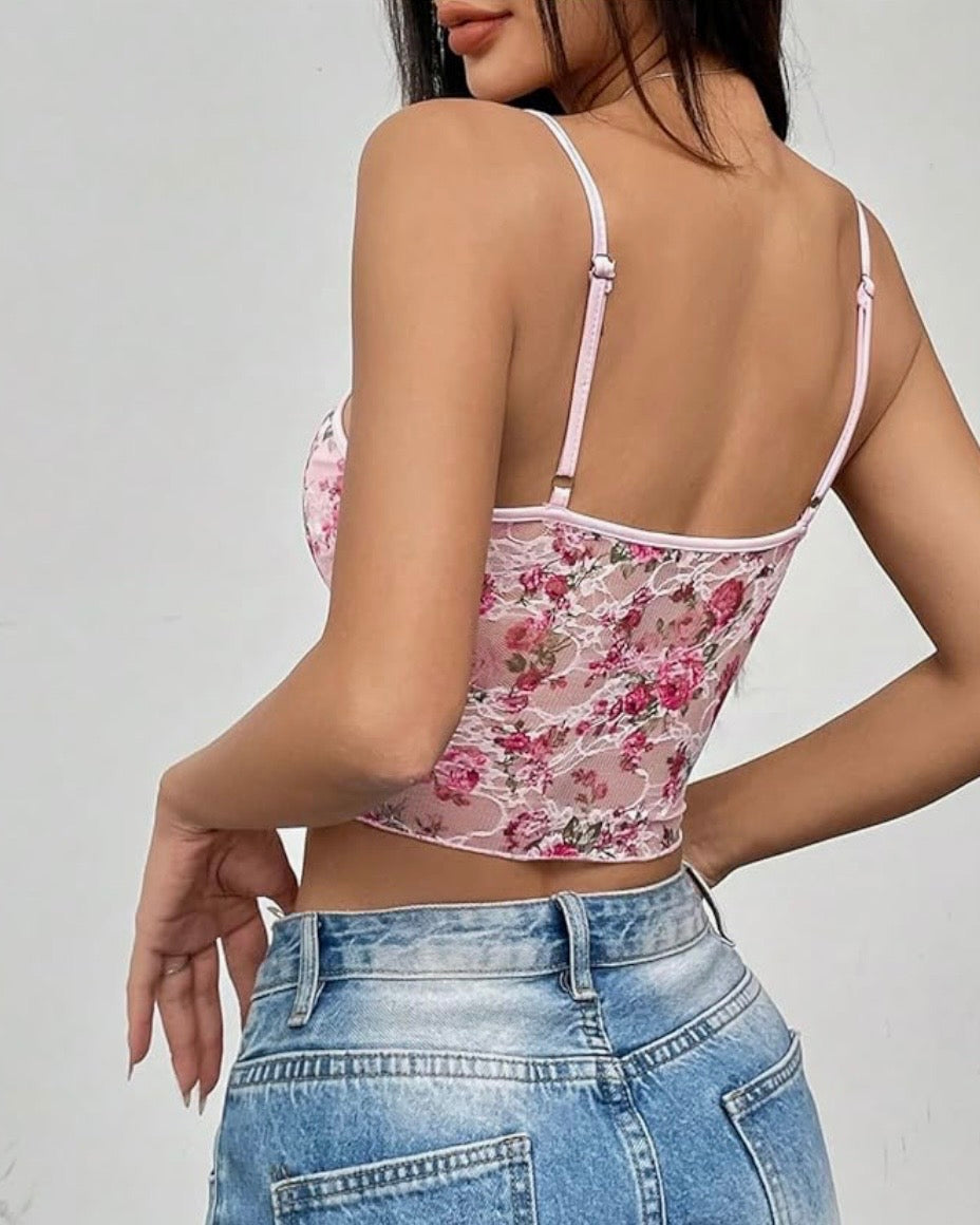 Un capo che unisce romanticismo e desiderio in un’unica creazione. Il rosa delicato si intreccia con la leggerezza del pizzo trasparente, mentre i fiori ricamati sembrano sbocciare direttamente sulla pelle, regalando un effetto raffinato e irresistibilmente sexy. Il piccolo fiocchetto centrale aggiunge un dettaglio di dolcezza, rendendo questo top lingerie un sogno da indossare, capace di accendere gli sguardi con grazia e passione. ✨